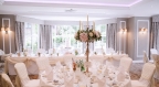 Having been recently refurbished, this space provides a stunning setting for a wedding; the large bay windows flood the room with natural daylight and offer exquisite views of the landscaped gardens.