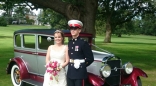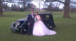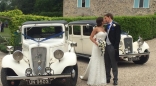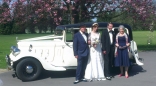 The perfect colour for a wedding, this stunning ivory car has a black roof and dark red interior. The Austin York can seat up to six people, perfect if you want to travel along with your bridesmaids.